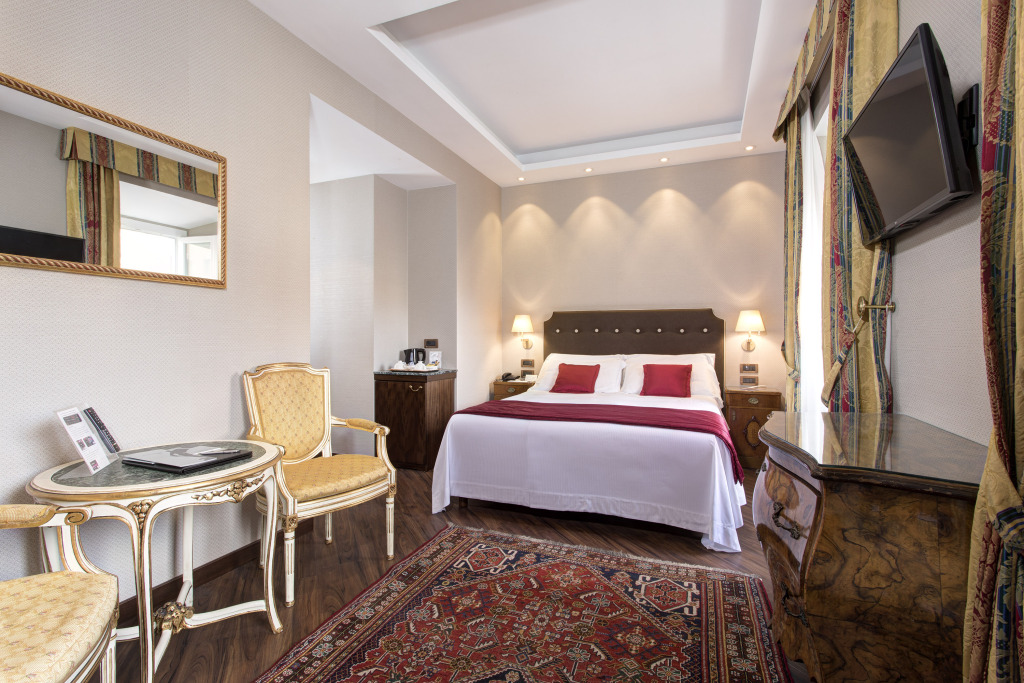 Отель Nazionale 4 звезды, адрес на карте Рим, Piazza Montecitorio 131, с характеристиками номеров и возможностью онлайн бронирования на сайте ВашОтель.RU , стоимость проживания и удобства.