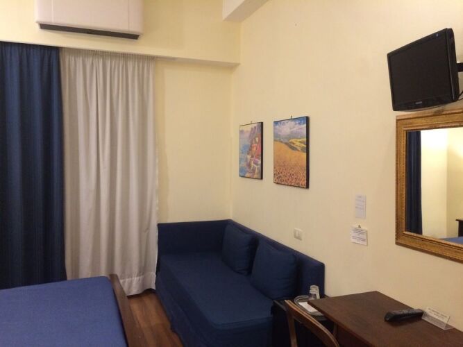 Отель располагает кондиционируемыми номерами, которые отличаются современным оформлением. В собственных ванных комнатах есть душевая кабина, а также в наличии фен. Окна некоторых номеров выходят во внутренний двор с фонтаном.
