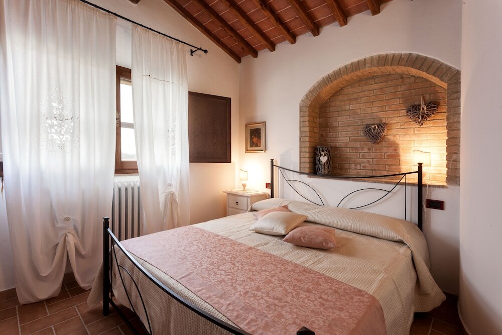 Подходящий вариант для бюджетного отдыха — отель «Podere Torricella» располагается в Сан-Джованни-д'Ассо. Этот отель находится в 5 км от центра города. Рядом с отелем — Городской театр Морлаччи, Университет Перуджи и Крепость Паолина.