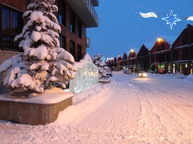 Въезд на лыжах на территорию отеля