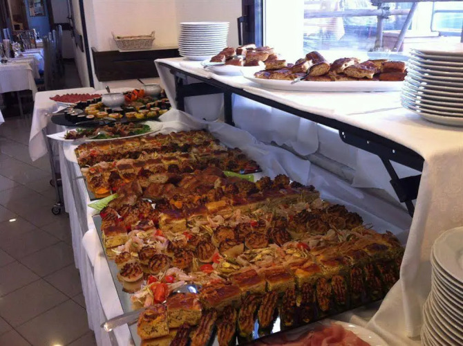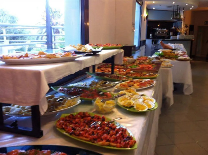 В 3-звездочном отеле Riviera гости могут насладиться классическим итальянским завтраком со свежей выпечкой и кофе. Ресторан национальной кухни, расположенный на территории, на обед и ужин предлагает гостям традиционные итальянские блюда.