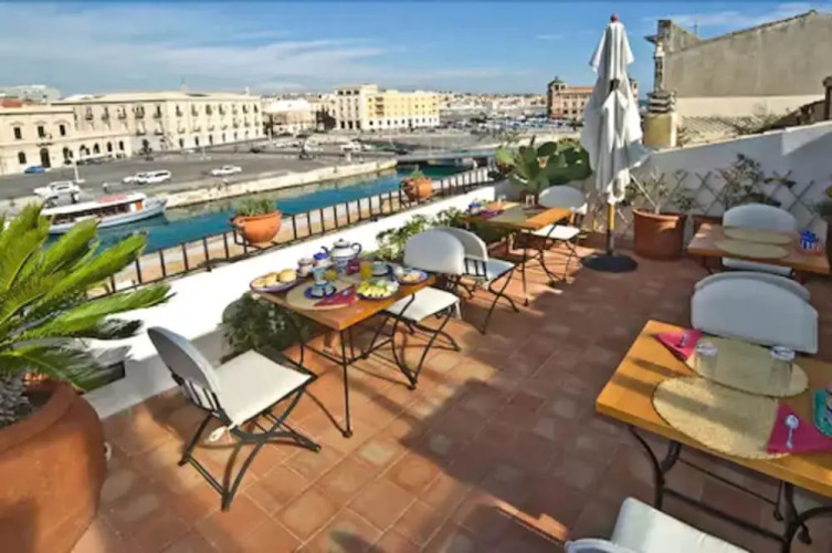 Отель L'Approdo delle Sirene 3 звезды, адрес на карте Сиракуза, Riva Giuseppe Garibaldi 15, с описанием номеров и доступностью онлайн бронирования на ресурсе ВашОтель.RU , цены проживания и удобства.