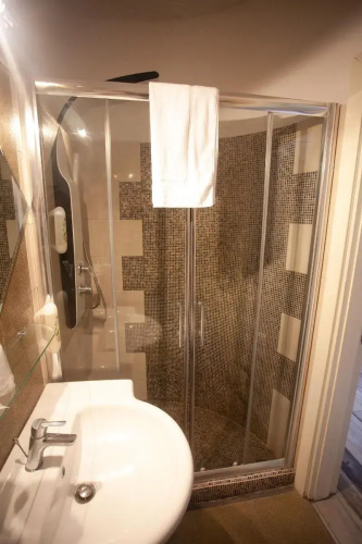 В номере вы найдёте душ и телевизор. Оснащение зависит от выбранной категории номера.