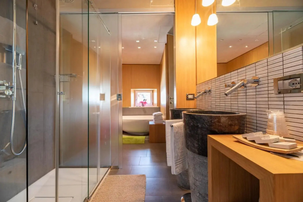 Номер уютно обставлен и оснащён необходимым, чтобы отдохнуть после долгого и насыщенного дня. Имеются душ, телевизор, мини-бар, халат и тапочки. Оснащение зависит от выбранной категории номера.