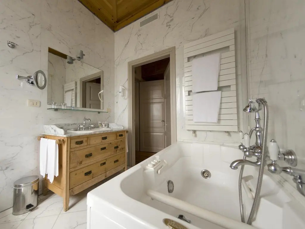 В номерах (74) отеля Grand Hotel Bagni Nuovi есть минибар и сейфы. Из номеров открывается вид на горы или сад. В ванных комнатах есть зеркало для макияжа или бритья, купальный халат, тапочки, а также бесплатные туалетные принадлежности. Бесплатно предоставляется беспроводной доступ в Интернет. В номерах предоставляются бесплатные газеты и телефон. В каждом номере есть проекционные ТВ-панели. Предлагается следующее: спутниковые каналы и платные фильмы. В номерах имеется открывающиеся окна и фен. По запросу предоставляется: услуга пробуждения по телефону, ежевечерняя уборка номера перед сном.