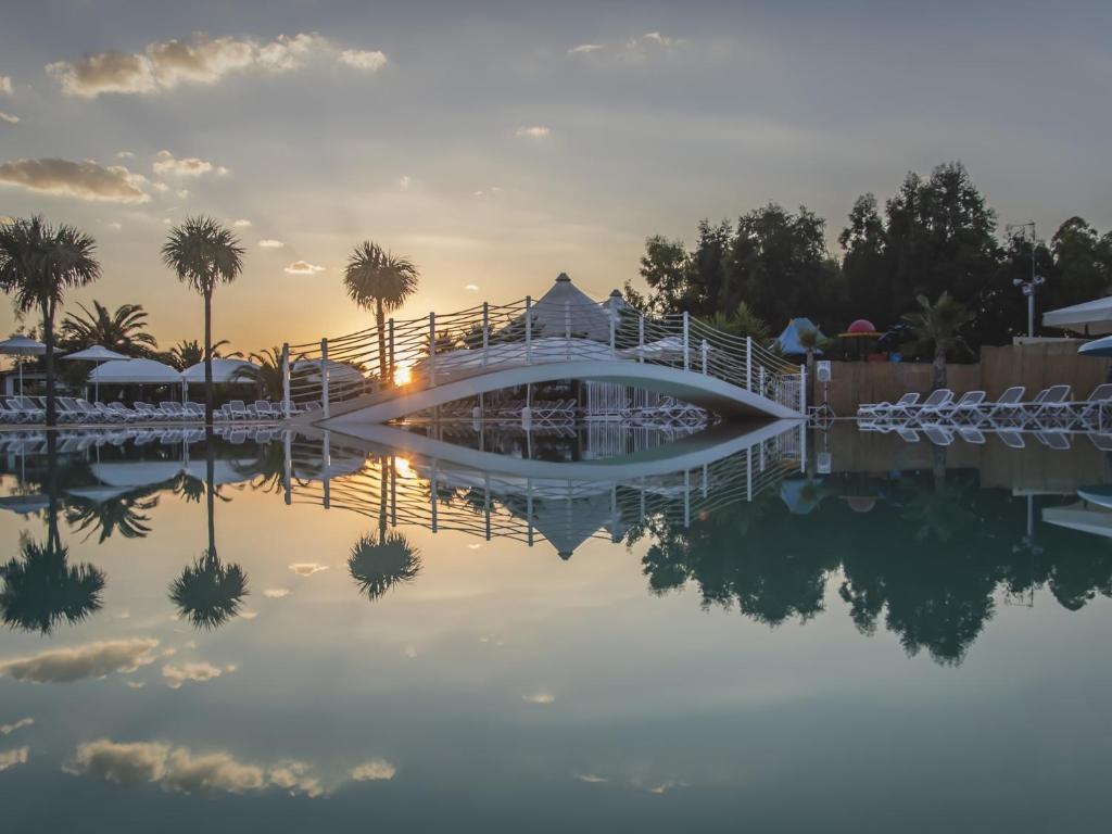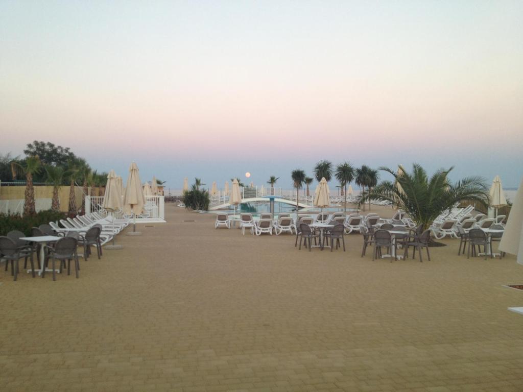 Среди услуг для красоты и здоровья — врач. Любителям спорта подготовили настольный теннис. Скучно не будет, ведь в отеле к услугам отдыхающих боулинг, площадка для пикника и площадка для барбекю. Здесь будем баловать себя водными процедурами: есть бассейн, аквапарк и открытый бассейн.