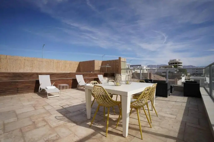 Отель פנטהאוז 5 חדרים שקט ומרווח, адрес на карте Эйлат, 156 Derekh Ha-Bsamim, Eilat, Israel, с описанием номеров и правом онлайн бронирования на площадке ВашОтель.RU , цены проживания и удобства.