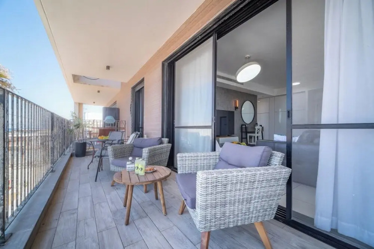 Отель Stylish 1BR Beach-Front Apt w Sea View, адрес на карте Хайфа, 1 Retsif Aharon Rosenfeld St, с характеристиками номеров и возможностью онлайн бронирования на сайте ВашОтель.RU , цены проживания и удобства.