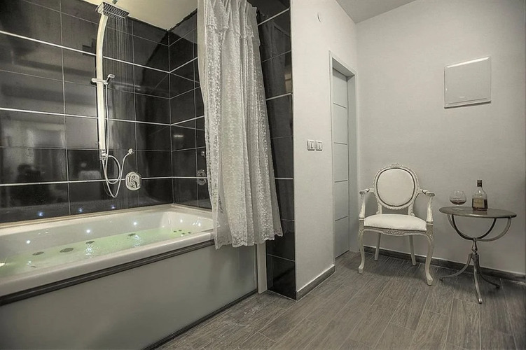 В номере вы найдёте душ, телевизор и тапочки. Оснащение зависит от выбранной категории номера.