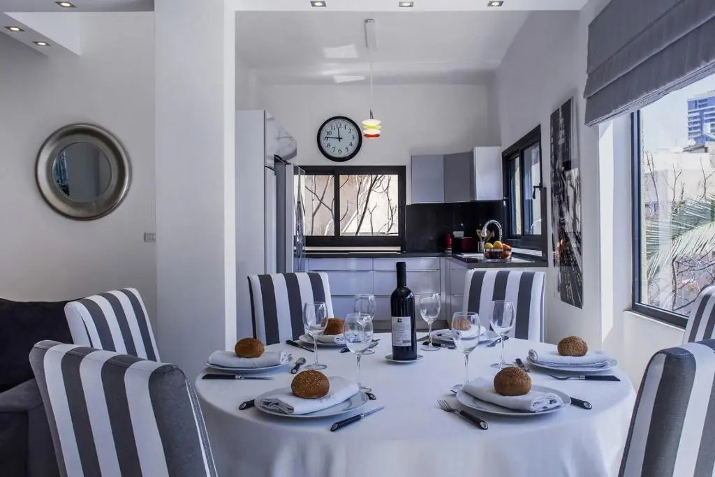 Отель Brilliant 3BR in Shalom Aleichem 27 by HolyGuest, адрес на карте Тель-Авив, 27 Shalom Aleichem Street, с характеристиками номеров и доступностью онлайн бронирования на сайте vashotel.ru , стоимость проживания и удобства.