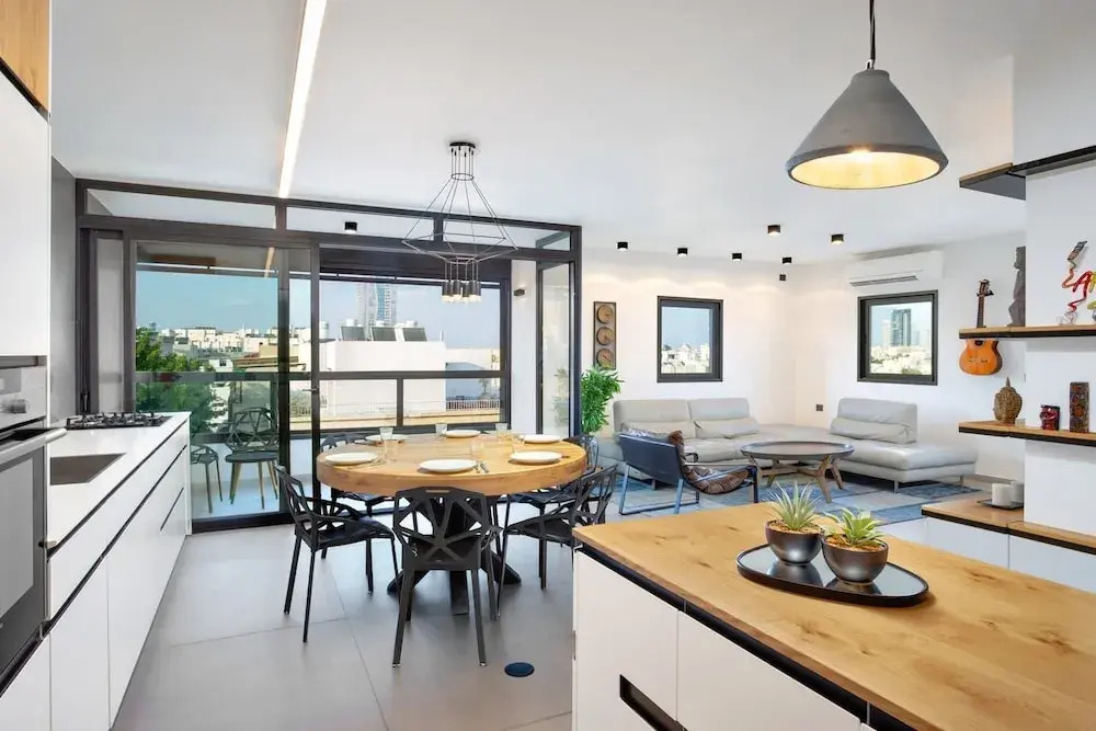 Отель Industrial Chic 3BR in Smolenskin by HolyGuest, адрес на карте Тель-Авив, Smolenskin Street 4, Tel Aviv, 63415, Israel, с характеристиками номеров и правом онлайн бронирования на ресурсе vashotel.ru , стоимость проживания и удобства.