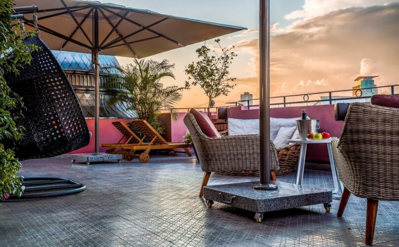 Удобно для гостей с ограниченными возможностями: на верхние этажи гостей поднимает лифт. А ещё в распоряжении гостей прачечная, химчистка, пресса, сейф и консьерж. Персонал отеля говорит на английском.