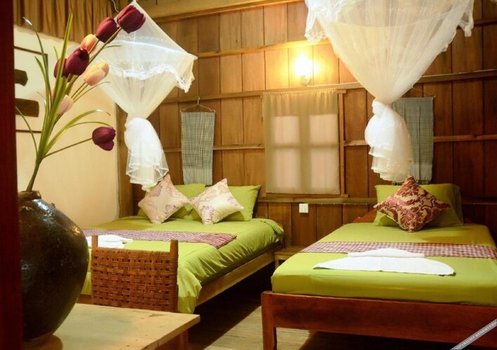 Подходящий вариант для бюджетного отдыха — отель «Fish Island Bungalows» расположен в Кампоте. Этот отель находится в пешей доступности от центра города.