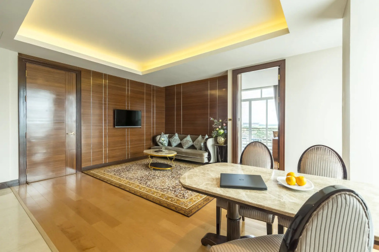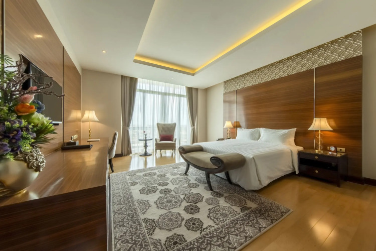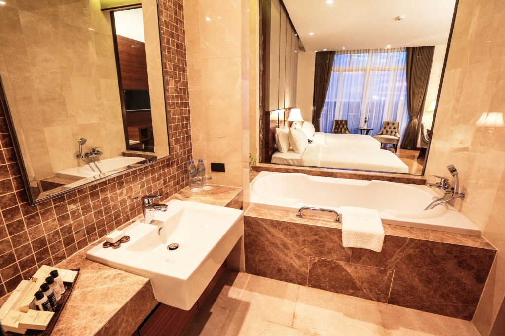 Номер уютно обставлен и оснащён необходимым, чтобы отдохнуть после долгого и насыщенного дня. Имеются будильник, душ, телевизор, мини-бар, халат и тапочки. Перечисленные услуги есть не во всех номерах.