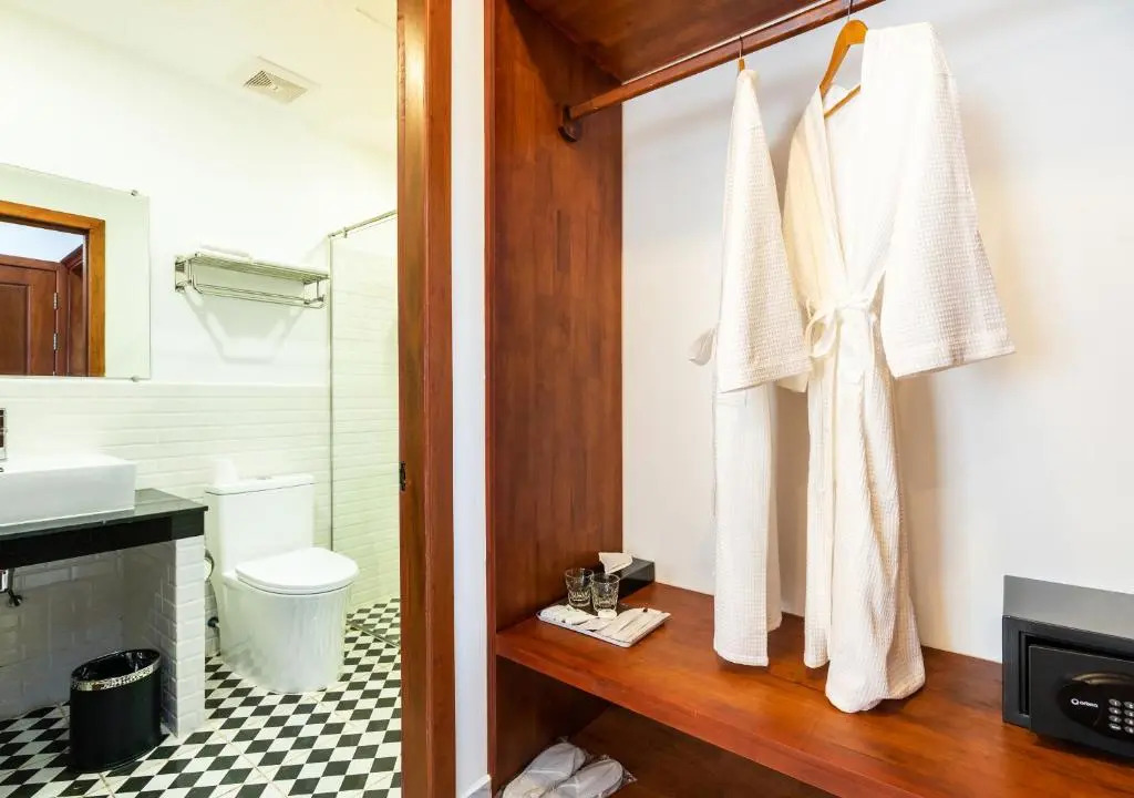 В номере вас будут ждать душ, мини-бар, халат и тапочки. Перечисленные услуги есть не во всех номерах.