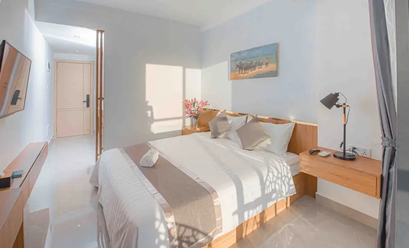 Номер уютно обставлен и оснащён необходимым, чтобы отдохнуть после долгого и насыщенного дня. Имеются телевизор, мини-бар и тапочки. Перечисленные услуги есть не во всех номерах.