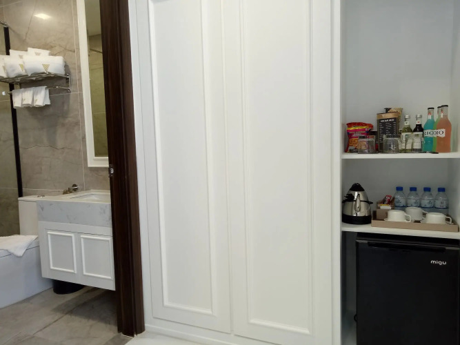 В номере вы найдёте будильник, душ, мини-бар, халат и тапочки. Перечисленные услуги есть не во всех номерах.