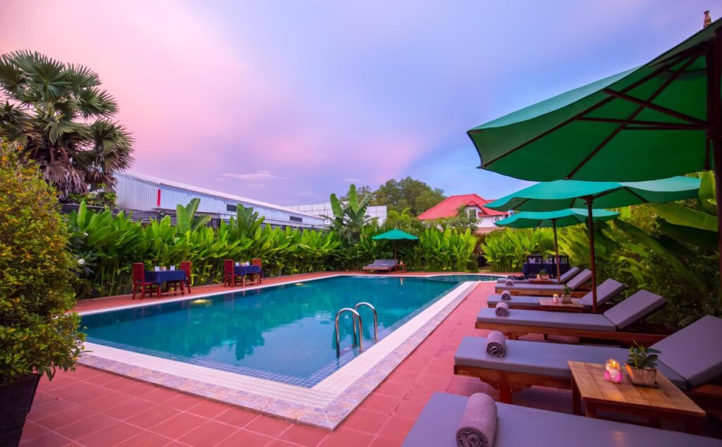 Бюджетный вариант для активного отдыха — отель «Sambath Residence» располагается в Сиемреапе. Этот отель находится в 4 км от центра города.