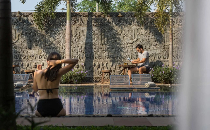 Отель Ung-D Hotel 4 звезды, адрес на карте Сиемреап, Krowat Krong Road, Kna Tmey, с описанием номеров и доступностью онлайн бронирования на ресурсе ВашОтель.RU , цены проживания и удобства.