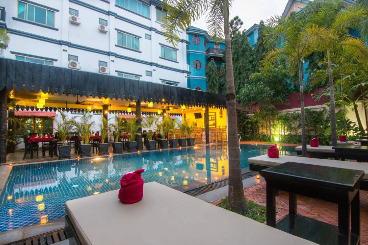 Отель Kara d'Angkor Residence, адрес на карте Сиемреап, 45 Sok San Road, с описанием номеров и доступностью онлайн бронирования на площадке vashotel.ru , стоимость проживания и удобства.