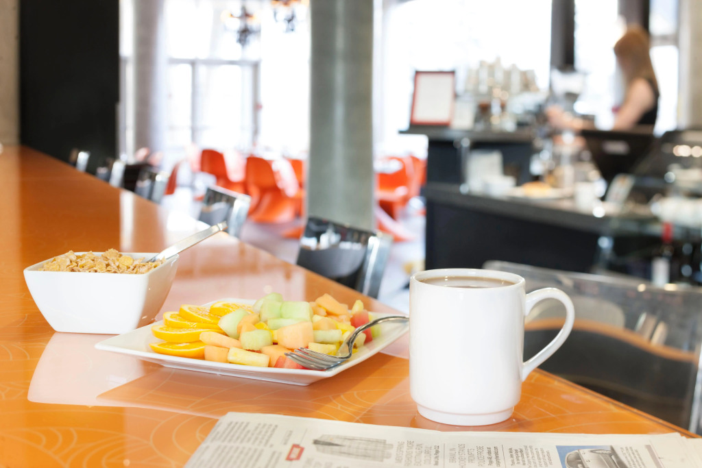 Утром гости отеля могут подкрепиться в ресторане отеля, где им предложат бесплатный континентальный завтрак. В течение дня работает кафе с освежающими напитками и разнообразными закусками. При необходимости опытный персонал отеля окажет помощь в организации банкетов.
