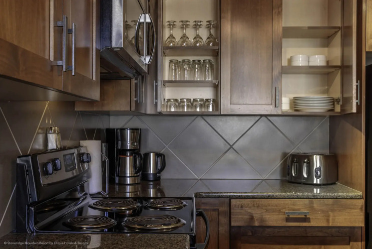 В кондиционируемых номерах (110) отеля Stoneridge Mountain Resort предоставляются следующие удобства: камин и док-станция для iPod. Имеются балконы, откуда открывается вид на горы, бассейн или сад. Постельные принадлежности включают: пружинный ортопедический матрас, а также постельное белье из египетского хлопка, три простыни и перьевое стеганое одеяло. Во всех номерах есть выделенные обеденные зоны, а также стол и эргономичное кресло. В номерах есть кухни, где имеется полноразмерный холодильник или морозильник, плита, микроволновая печь и посудомоечная машина. В ванных комнатах есть раздельные ванные и душевые, двойная раковина, дизайнерские туалетные принадлежности, а также фен. Бесплатно предоставляется беспроводной доступ в Интернет. В номерах имеется бесплатные газеты, а также устройство громкой связи с поддержкой голосовой почты; предоставляется возможность совершать бесплатные местные звонки (могут применяться ограничения). В каждом номере есть 42-дюйм. ЖК-телевизоры. Предлагается следующее: кабельные каналы и DVD-проигрыватель. Также предоставляются следующие удобства: стиральная машина, сушилка и кофеваркачайник. Все номера отеля – это номера для некурящих.