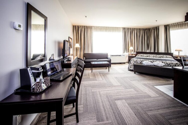 Отель Hôtel Charlemagne 3 звезды, адрес на карте Шарлемань, 115, boulevard Céline-Dion, J5Z 4P8 Charlemagne, Canada, с описанием номеров и возможностью онлайн бронирования на ресурсе vashotel.ru , стоимость проживания и удобства.