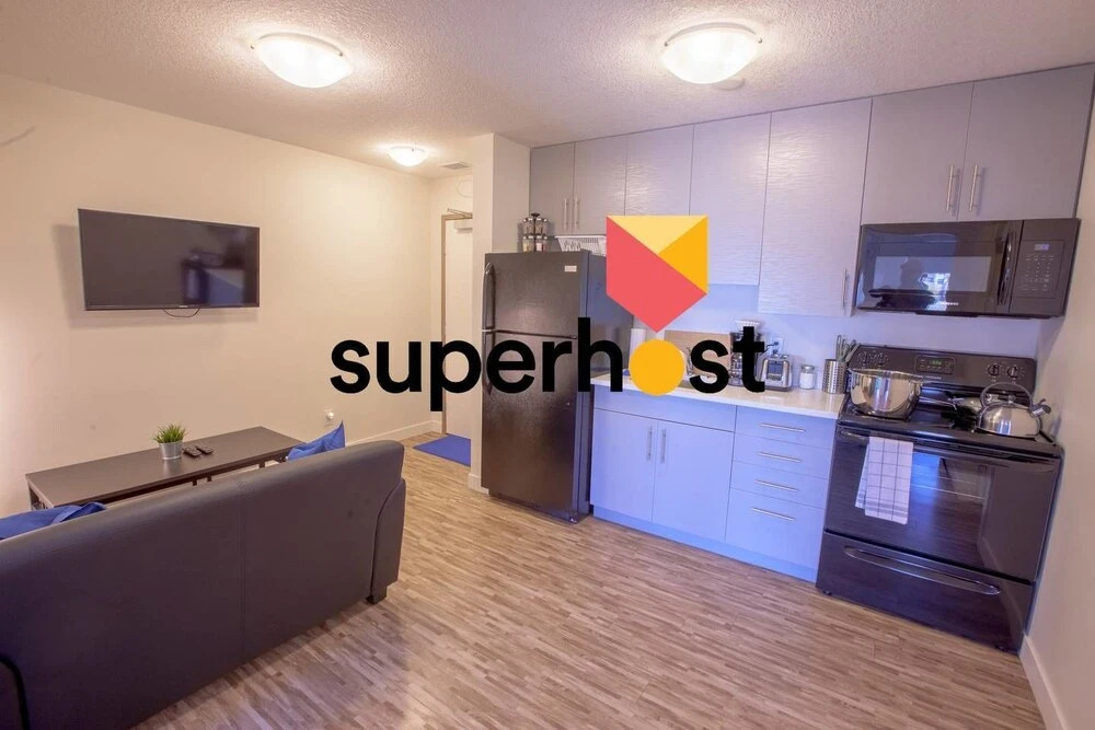 Отель Stay With Ease Hospitality! 2 Bed 1 Bath, адрес на карте Эдмонтон, 10530 111 Street Northwest, с описанием номеров и доступностью онлайн бронирования на сайте vashotel.ru , стоимость проживания и удобства.