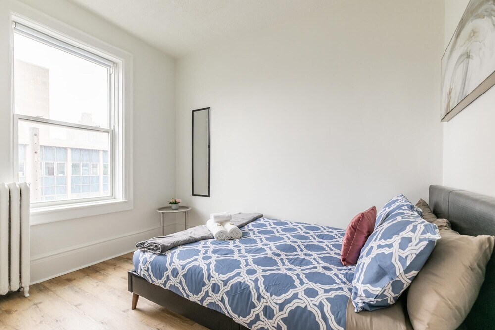 Отель Warm Cozy 2BR Apartment With Netflix, адрес на карте Гамильтон, John Street South 63, с характеристиками номеров и доступностью онлайн бронирования на сайте vashotel.ru , цены проживания и удобства.
