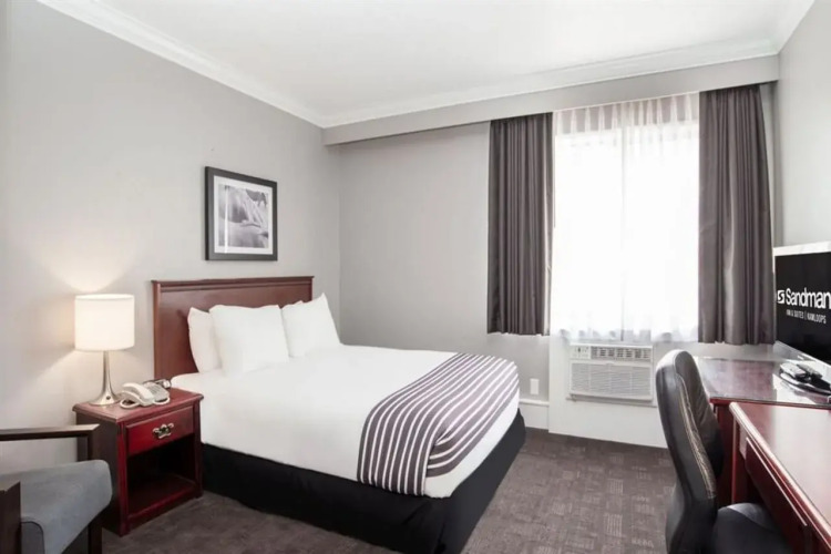 В кондиционируемых номерах (65) отеля Sandman Inn Kamloops предоставляются следующие удобства: кофеваркачайник и бесплатные газеты. В ванных комнатах есть бесплатные туалетные принадлежности, а также фен. В номерах имеется телефон; предоставляется возможность совершать бесплатные местные звонки (могут применяться ограничения). Имеется возможность просмотра кабельных телеканалов премиум-класса. Также предоставляются следующие удобства: затемненные шторы и утюг, гладильная доска. По запросу предоставляется: гипоаллергенные постельные принадлежности и услуга пробуждения по телефону. Обслуживание номеров выполняется ежедневно. Все номера отеля – это номера для некурящих.