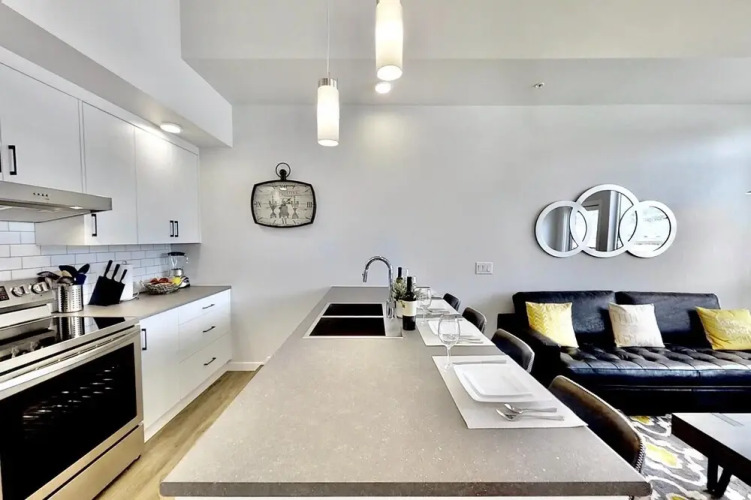 Отель Brand New, Top Floor Condo Downtown, адрес на карте Келоуна, 1215 St Paul Street, с характеристиками номеров и возможностью онлайн бронирования на ресурсе ВашОтель.RU , цены проживания и удобства.