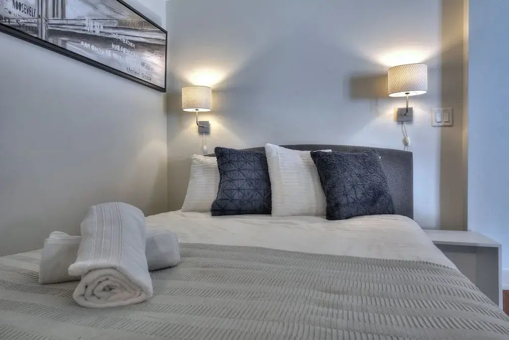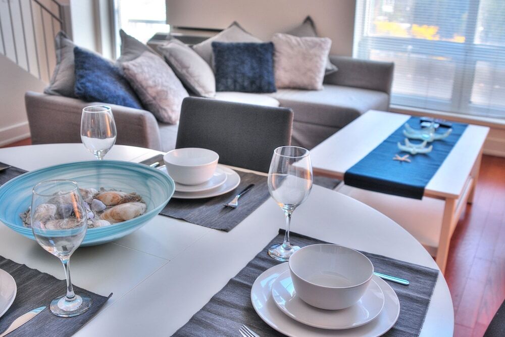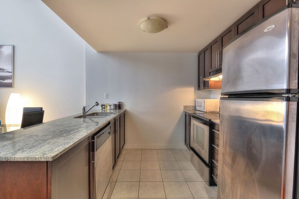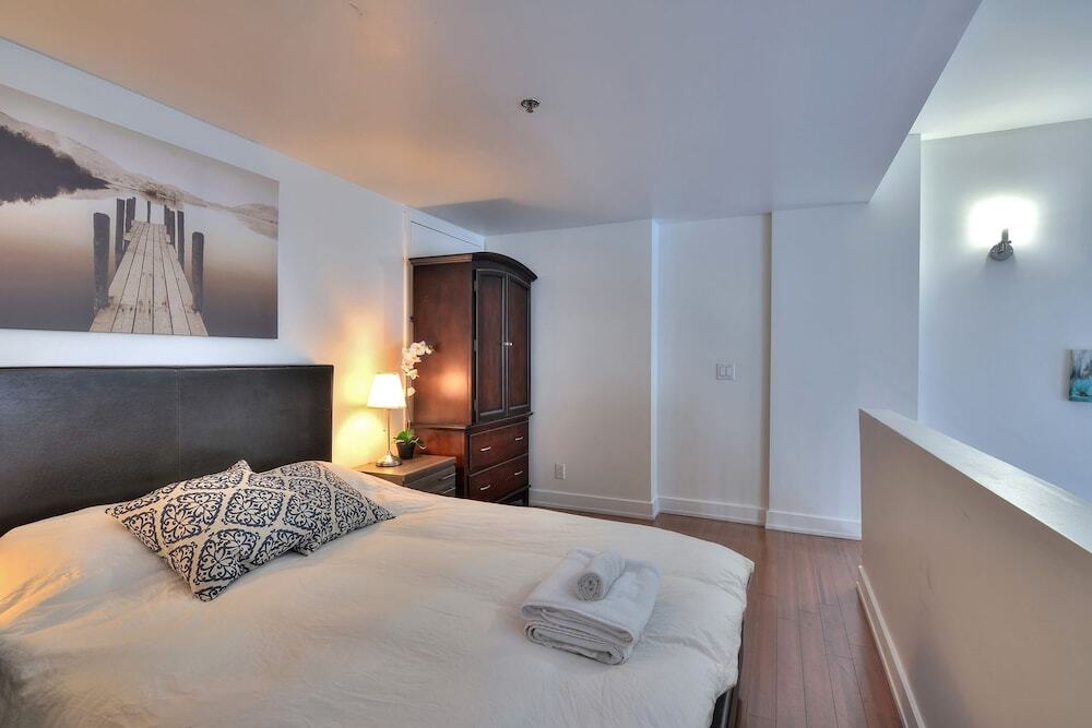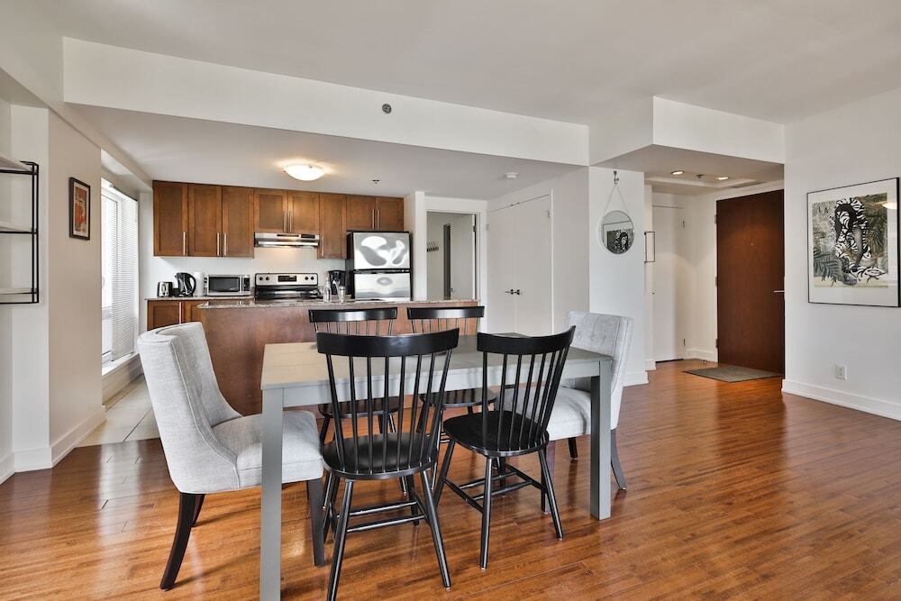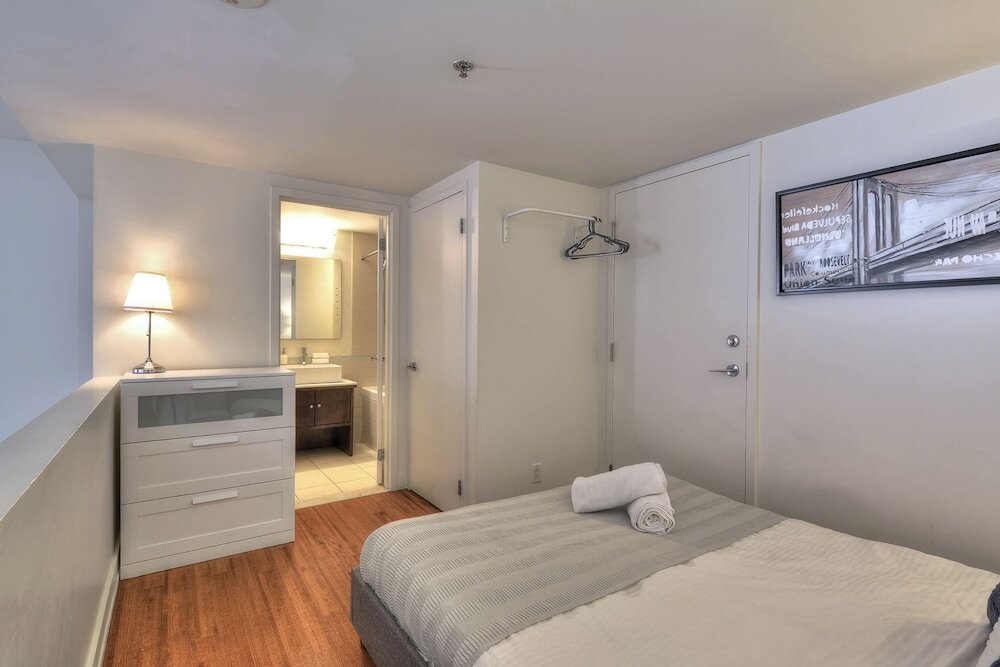Отель 2 Floor Mezzanine Condo Near Convention Center, адрес на карте Монреаль, 345 Rue de la Gauchetière Ouest, с описанием номеров и доступностью онлайн бронирования на ресурсе vashotel.ru , цены проживания и удобства.