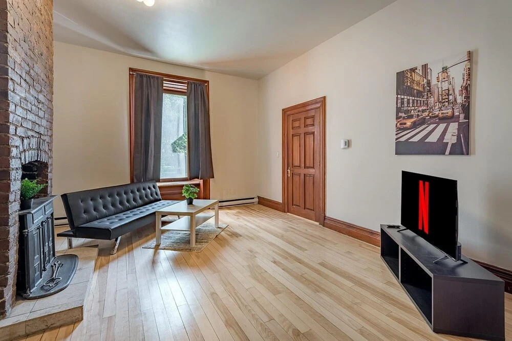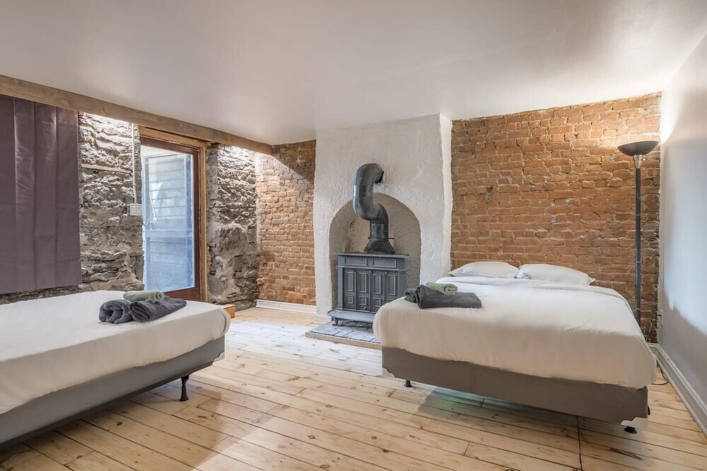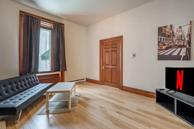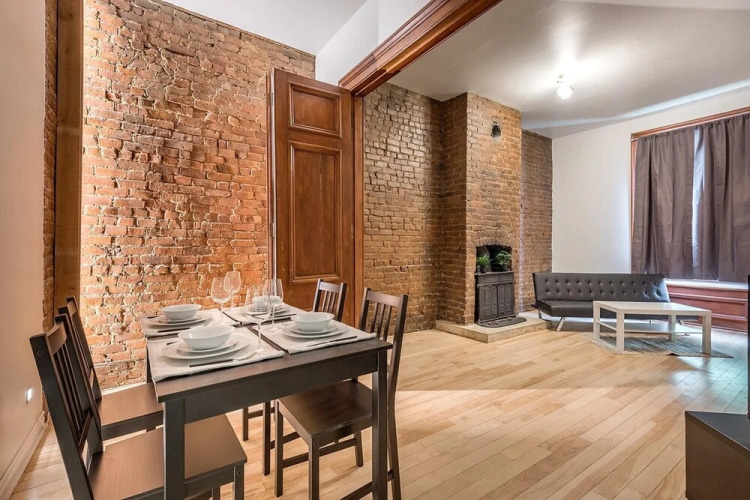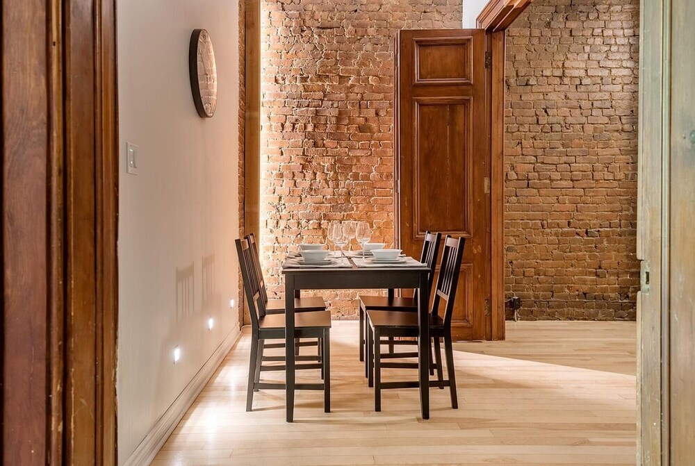 Отель Beautiful Cozy 2-storey Apartment In the of Downtown MTL, адрес на карте Монреаль, Rue Saint Mathieu 1232, с характеристиками номеров и возможностью онлайн бронирования на сайте vashotel.ru , цены проживания и удобства.