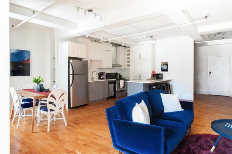 Отель Peaceful 2BR in Mile End by Namastay, адрес на карте Монреаль, 5413 Boulevard Saint-Laurent 303, с характеристиками номеров и доступностью онлайн бронирования на площадке vashotel.ru , стоимость проживания и удобства.