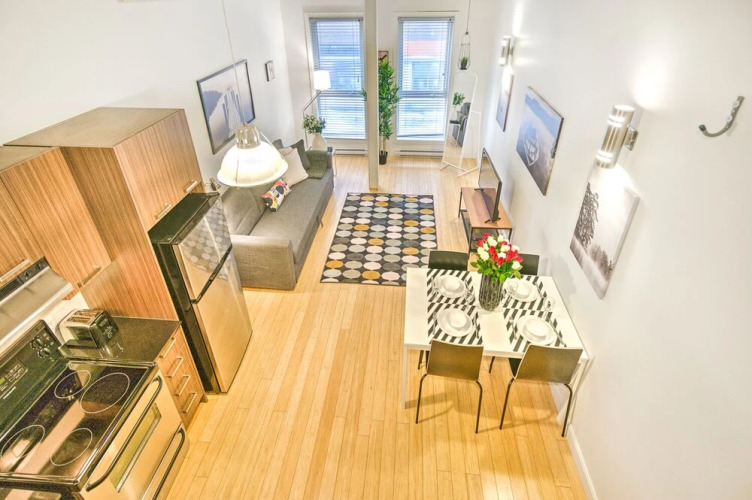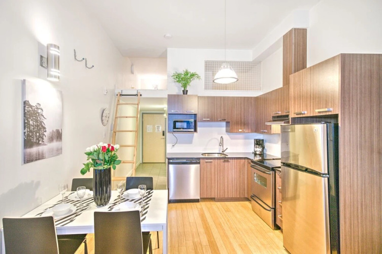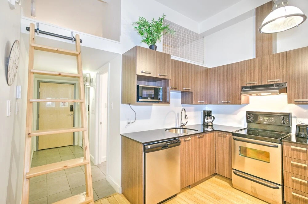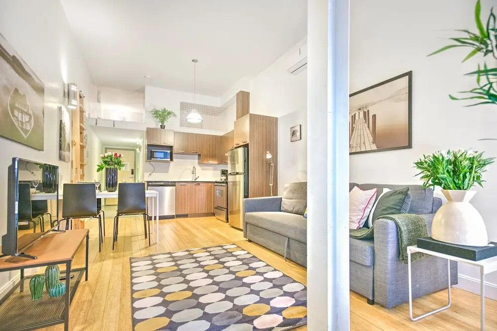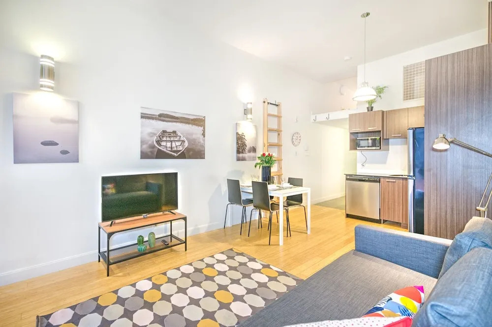 Отель The Main 202 Central Modern Mezzanine Liv Mtl, адрес на карте Монреаль, Rue Prince Arthur Est 58, 202, с описанием номеров и доступностью онлайн бронирования на сайте ВашОтель.RU , стоимость проживания и удобства.