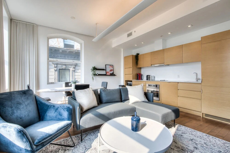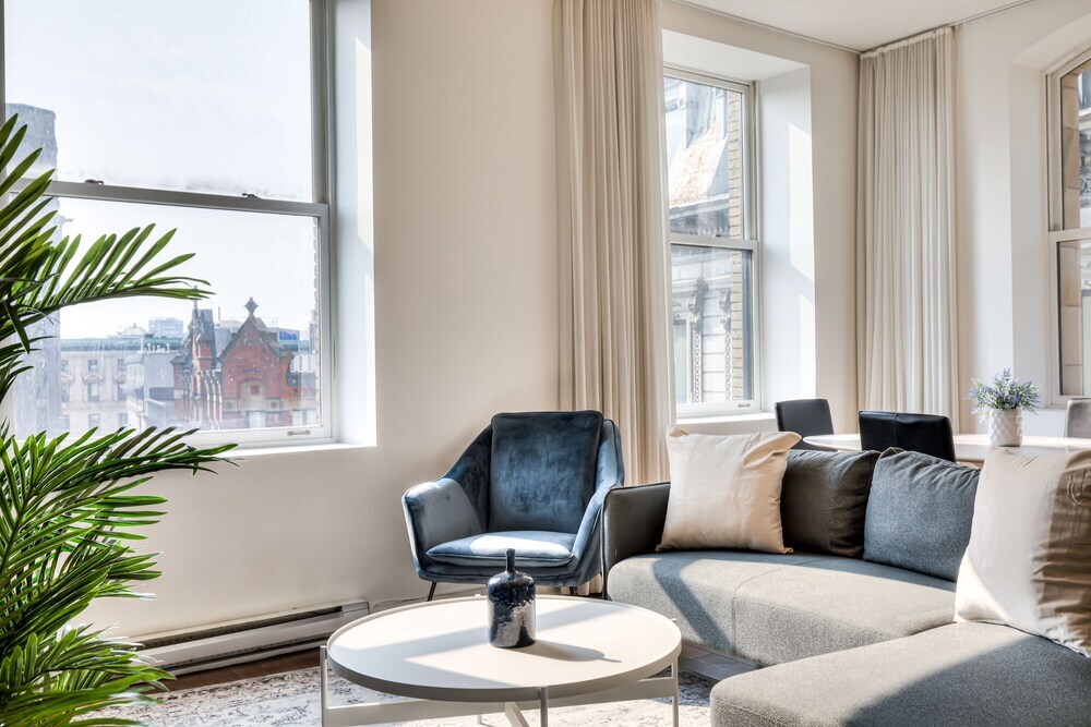 Отель The taliane Superbe Condo 2BDR Montreal, адрес на карте Монреаль, 244 Rue Saint-Jacques, с описанием номеров и правом онлайн бронирования на ресурсе vashotel.ru , цены проживания и удобства.