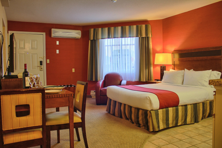 Трехзвездочный отель Holiday Inn & Suites Osoyoos предлагает размещение в 118 стандартных номерах с совмещенным санузлом и ванной, а также феном, расположенных в основном 4-этажном здании. В каждом номере есть набор для приготовления чая и кофе и мини-бар. Спутниковое телевидение и система кондиционирования сделают отдых комфортным. Ценности можно хранить в сейфе. По запросу предоставляется гладильная доска и утюг. Из окон и с балконов номеров открывается вид на озеро или сад. Уборка номеров производится ежедневно.