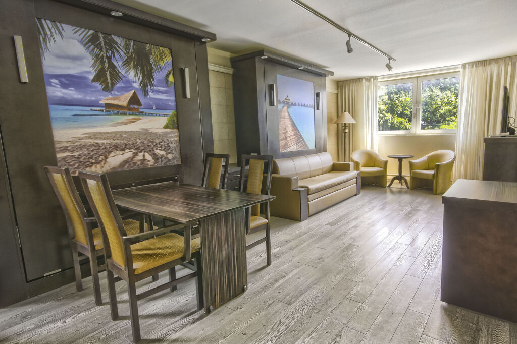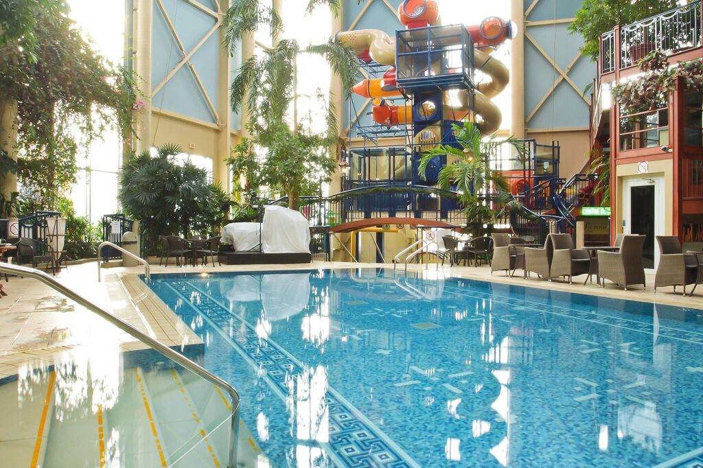 Также для гостей в отеле: сауна и солярий. Спортивные гости оценят фитнес-центр. Для тех, кто не представляет отдых без водных удовольствий, есть бассейн, аквапарк и крытый бассейн. Для участников деловых встреч предусмотрены бизнес-центр и специальное оборудование.