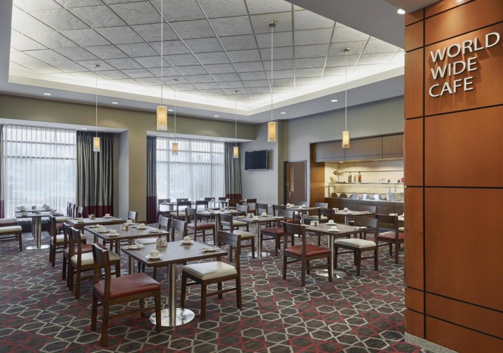 Трехзвездочный отель Four Points by Sheraton Vancouver Airport – это отель как для деловых людей во время командировки, так и тех, кто мечтает о семейном отдыхе. Из аэропорта всех прибывших встретит бесплатный трансфер, после чего доброжелательный персонал, говорящий на нескольких языках, поможет с удобством разместиться и обменяет валюту. Сразу на стойке регистрации вы можете заказать экскурсии и забронировать необходимые билеты. На случай, если не с кем оставить ребенка, в отеле предлагаются услуги няни.