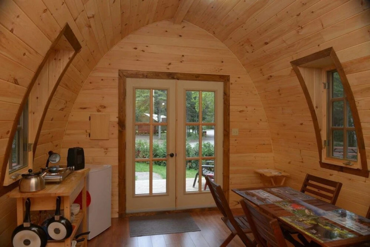 Отель Les Prets a Camper du Camping Tadoussac, адрес на карте Тадуссак, 428, rue du Bateau-Passeur, с описанием номеров и доступностью онлайн бронирования на сайте ВашОтель.RU , цены проживания и удобства.