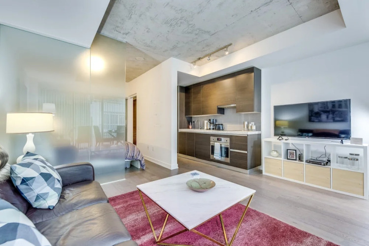 Отель Stunning 1BR Suite in Popular King West, адрес на карте Торонто, 38 Stewart Street Unit 535, с характеристиками номеров и правом онлайн бронирования на площадке vashotel.ru , стоимость проживания и удобства.