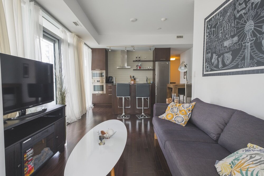 Отель Stunning Suites - Beautiful 2bdr Condo, адрес на карте Торонто, 12 York Street, с описанием номеров и возможностью онлайн бронирования на площадке vashotel.ru , стоимость проживания и удобства.
