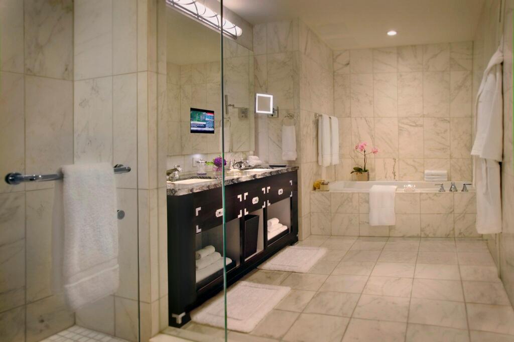Отель Trump International & Tower Toronto предлагает своим гостям размещение в 261 современных номерах. В каждом номере есть кондиционер, телевизор с кабельным телевидением и письменный стол. В номерах также имеются холодильник, мини-бар и бесплатный Wi-Fi. В индивидуальной ванной комнате каждого номера предусмотрены ванна, душ, фен и бесплатные туалетные принадлежности.