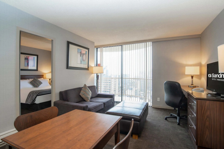 Отель Sandman Suites Vancouver on Davie 4 звезды, адрес на карте Ванкувер, 1160 Davie St, с характеристиками номеров и доступностью онлайн бронирования на площадке ВашОтель.RU , цены проживания и удобства.