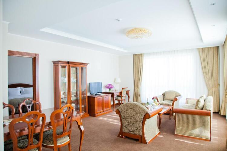 Номер уютно обставлен и оснащён необходимым, чтобы отдохнуть после долгого и насыщенного дня. Имеются телевизор и халат. Перечисленные услуги есть не во всех номерах.