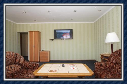 В номере вы найдёте телевизор. Оснащение зависит от выбранной категории номера.
