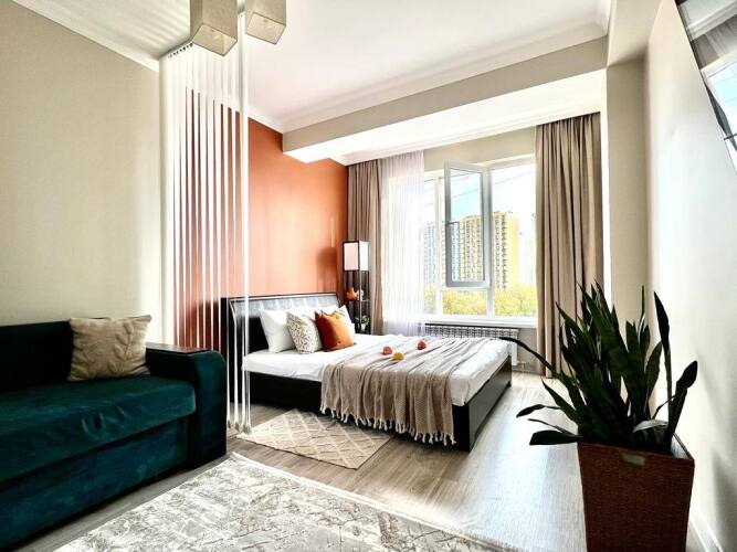 Выбор туристов, путешествующих с семьёй: апартаменты «Апартаменты Двухкомнатные Апартаменты Терракота» располагаются в Алматы. Эти апартаменты находятся в 5 км от центра города. Рядом с апартаментами — Ботанический сад, Алматинский центральный стадион и Площадь Республики.