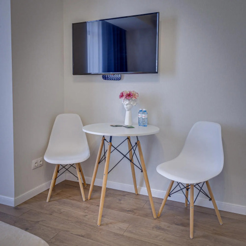 В номере вы найдёте телевизор. Оснащение зависит от выбранной категории номера.