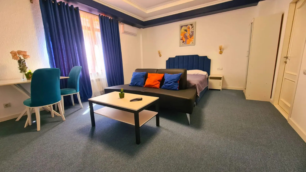 Чтобы вы могли отдохнуть после долгого дня, в номере есть телевизор и халат. Оснащение зависит от выбранной категории номера.