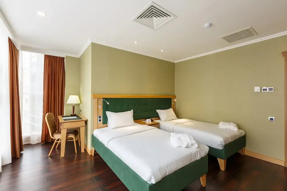 Номер уютно обставлен и оснащён необходимым, чтобы отдохнуть после долгого и насыщенного дня. Имеются телевизор, мини-бар и халат. Оснащение зависит от выбранной категории номера.